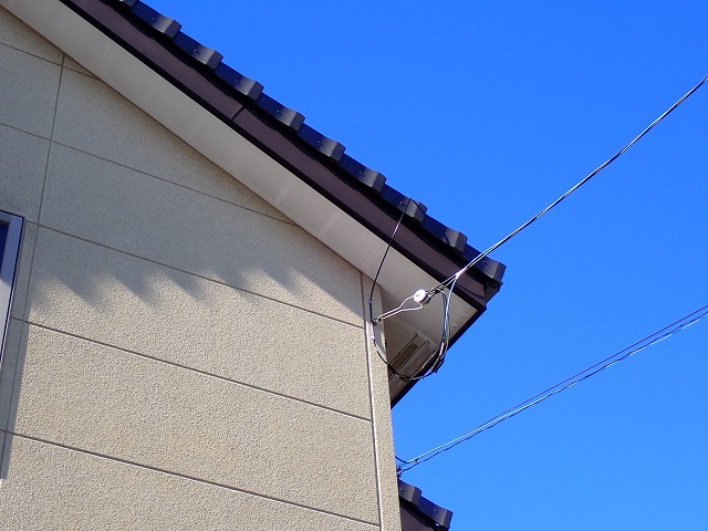 家の正面側にでアンテナ線を繋ぐ許可を頂きました。